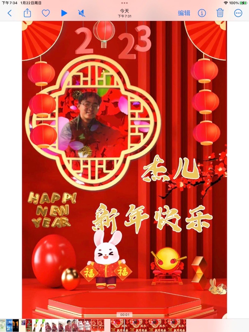 儿子,过年好!今天是大年初一,兔年了,妈妈祝你新年快乐!