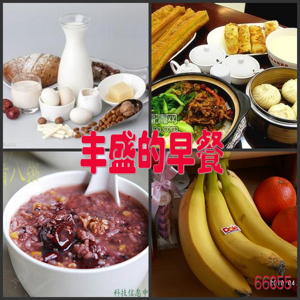 早饭好了,有稀粥、包子、牛奶、茶鸡蛋、水果,都是家常早饭,快吃吧。年后第一天上班,不能迟到,路上开车慢一点!