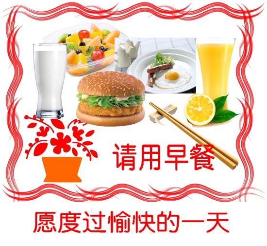 早餐准备好了,请一会儿自己用,愿儿度过愉快的一天!